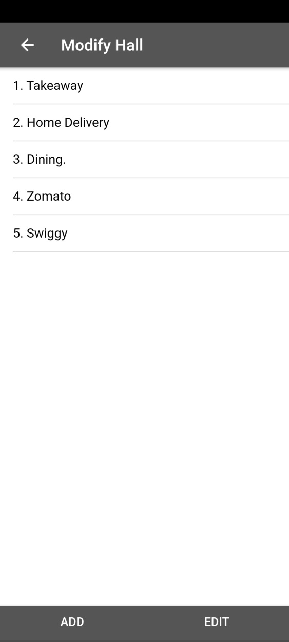 Click on 'Add' to add a new hall or click on an existing hall and then click on 'Edit' if you want to edit it. You can make the additions/changes accordingly