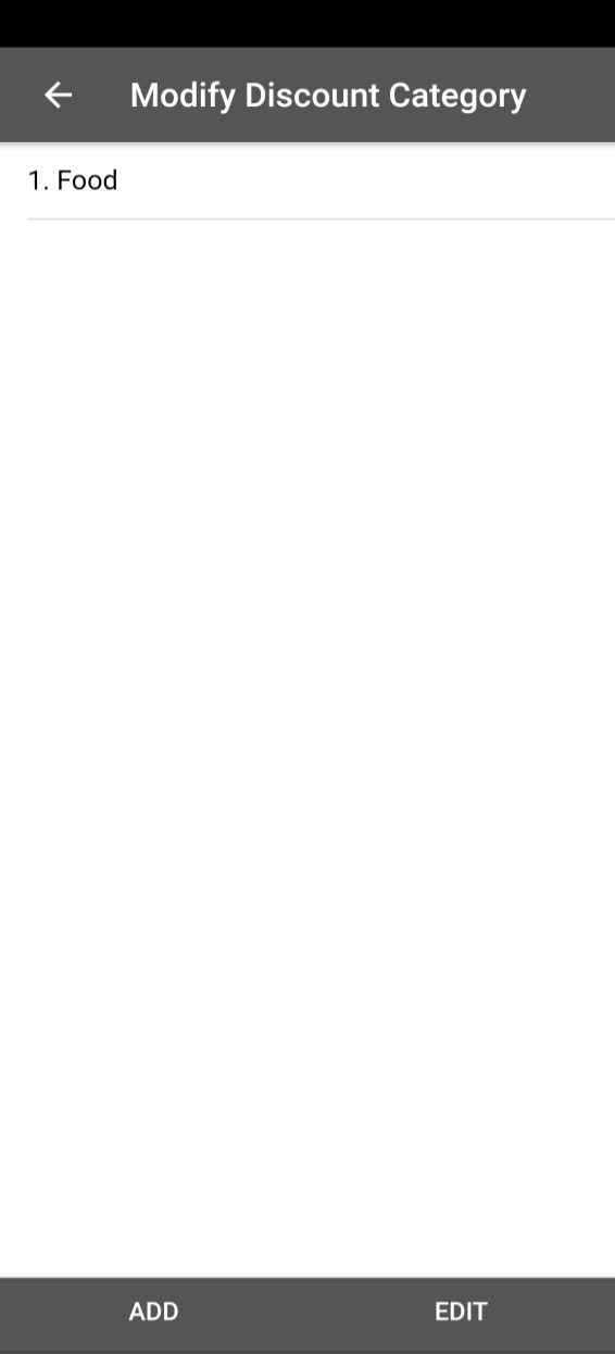 Click on 'Add' to add a new discount category or click on an existing category and then click on 'Edit' if you want to edit it.